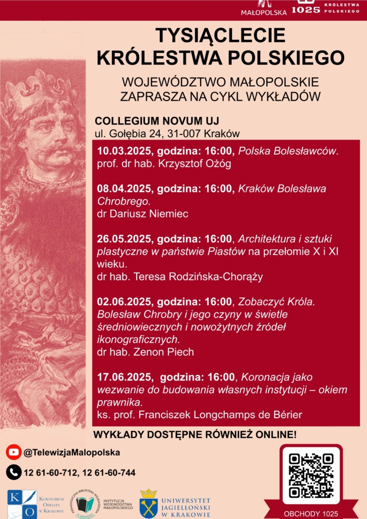 Więcej informacji na temat obchodów Jubileuszu Tysiąclecia Królestwa Polskiego w 2025 roku znajdą Państwo na stronie: portalu Urzędu Marszałkowskiego Województwa Małopolskiego: