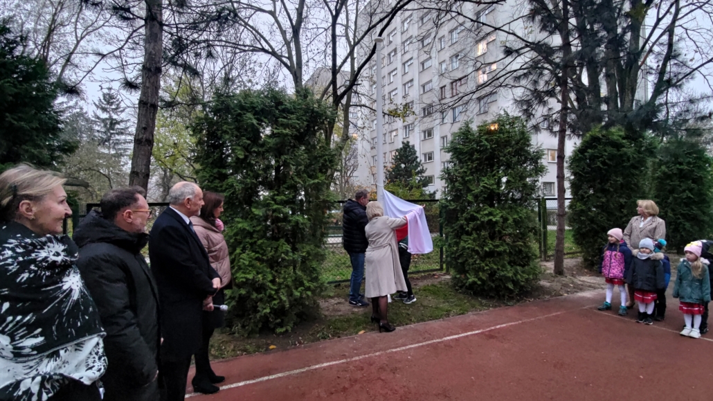 Zarząd naszego stowarzyszenia serdecznie dziękuje dyrekcji szkoły na ręce Pani Dyrektor Danuty Piekary, nauczycielom, rodzicom, przedszkolakom oraz w szczególny sposób Pani Pani Małgorzacie Janiec – radnej dzielnicy III Prądnik Czerwony dzięki której staraniom maszt mógł zostać przekazany przedszkolu.