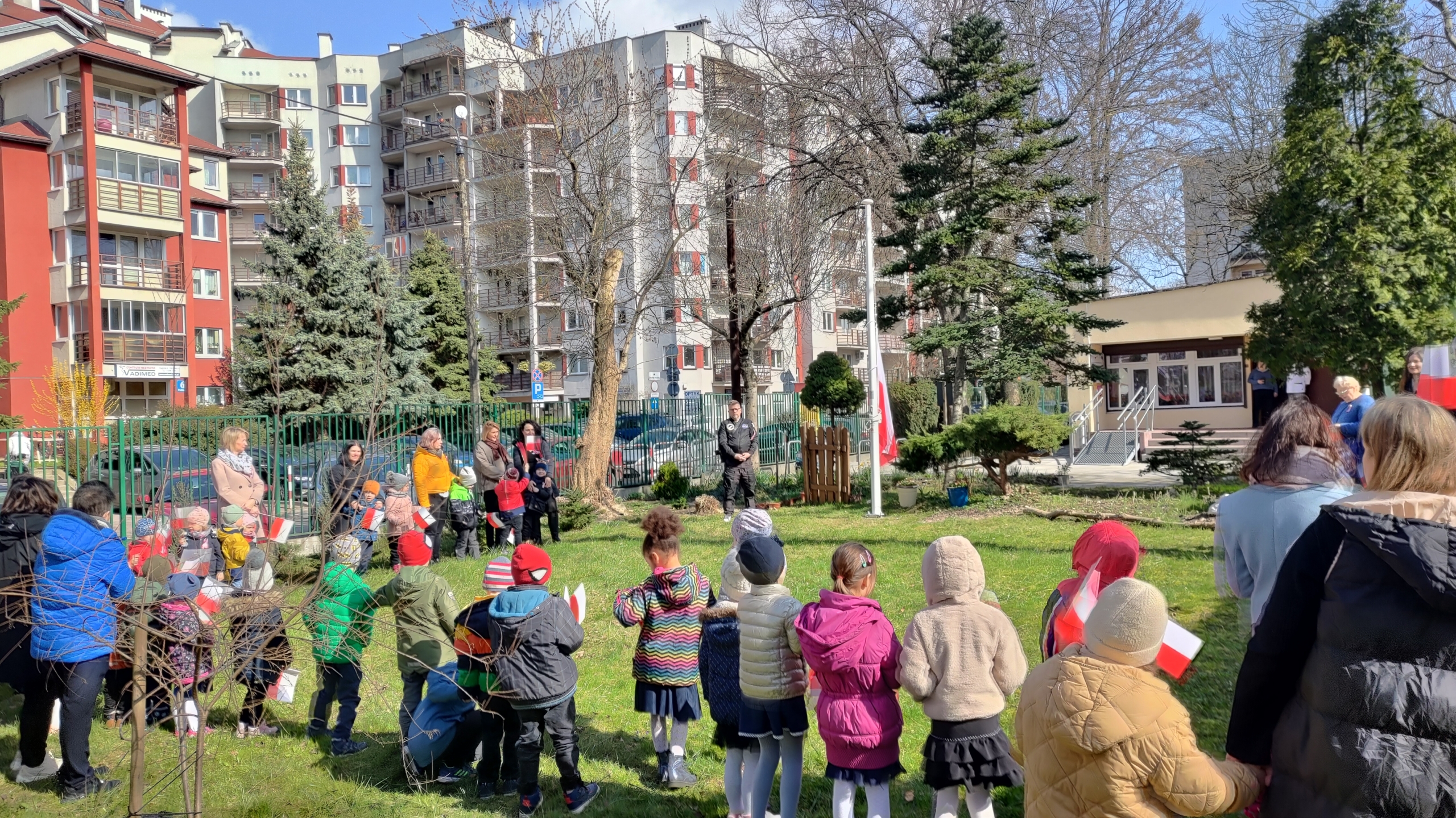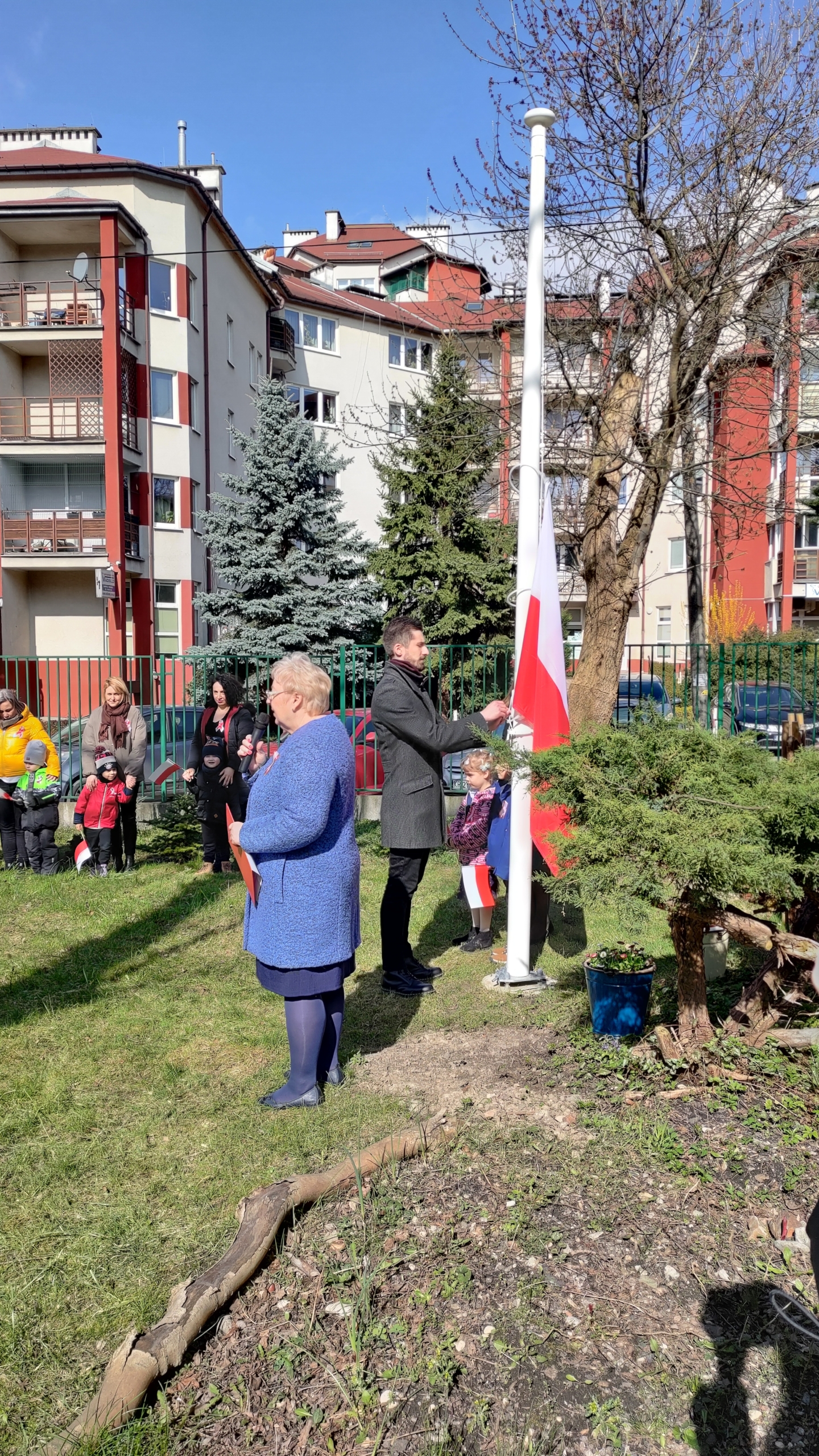 Na uroczystości byli obecni m.in: przewodniczący Sejmiku Województwa Małopolskiego prof. Jan Tadeusz Duda, przedstawiciele Urzędu Miasta Krakowa, Rady Miasta Krakowa, Dzielnicy III Prądnik Czerwony, Spółdzielni Mieszkaniowej- Ugorek oraz Rady Rodziców. Po uroczystym wciągnięciu flagi i odśpiewaniu Hymnu, przedszkolaki zaprezentowały zebranym wzruszającą akademię patriotyczną.