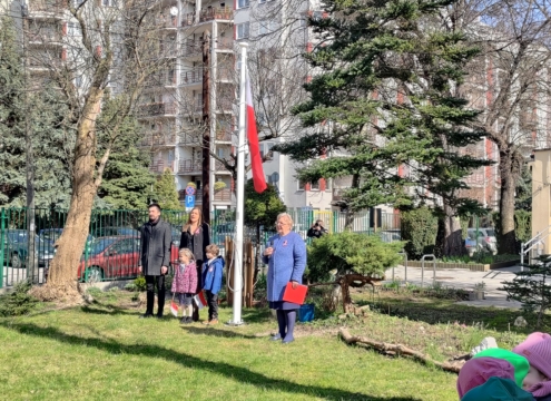 Uroczyste odsłonięcie masztu przy Samorządowym Przedszkolu nr 122 w Krakowie