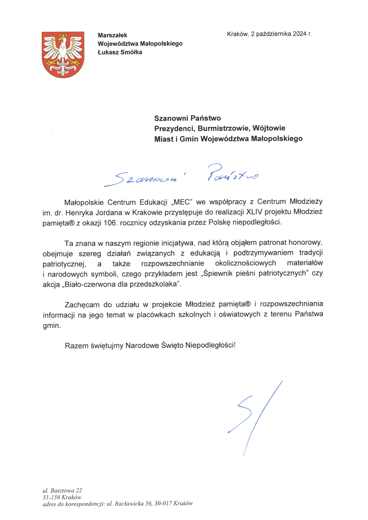XLIV edycja projektu Młodzież pamięta® – w 106. rocznicę odzyskania przez Polskę Niepodległości – zaproszenie do odbioru materiałów okolicznościowych!