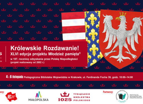 W związku ze zbliżającą się 107. rocznicą odzyskania przez Polskę Niepodległości przesyłamy tradycyjnie list od Marszałka Województwa Małopolskiego, Pana Łukasza Smółki dotyczący kolejnej edycji projektu Młodzież pamięta®. Zapraszamy do odbioru materiałów okolicznościowych, w tym śpiewników pieśni patriotycznych zawierających wkładkę tematyczną pt. „Generał August Emil Fieldorf „NIL”-bohaterski Małopolanin” w 130. rocznicę urodzin.